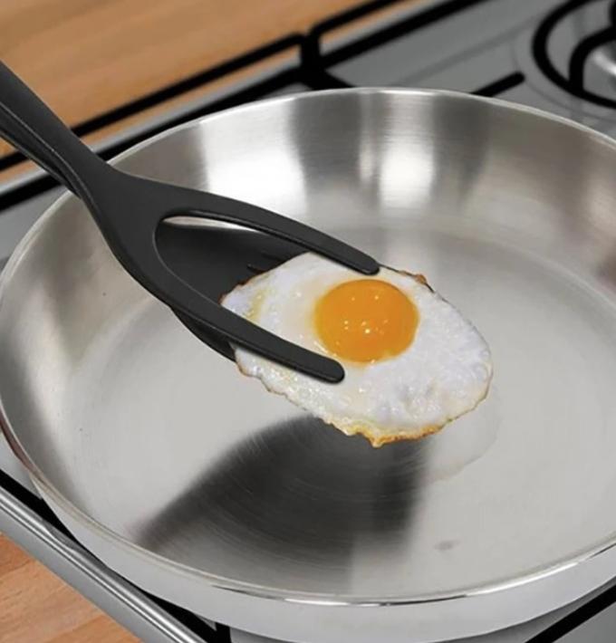 Nossa espátula 2 em 1 combina duas ferramentas essenciais em uma só: uma espátula larga para virar alimentos maiores, como ovos e filés de carne, e uma garra com ponta fina para virar alimentos delicados, como panquecas e omeletes. Com um único utensílio, você pode lidar com uma variedade de tarefas na cozinha. Equipada com uma alça confortável, nossa espátula foi projetada para oferecer o máximo conforto e controle durante o uso. Sua forma ergonômica se adapta perfeitamente à sua mão, permitindo movimentos suaves e precisos ao virar seus alimentos.